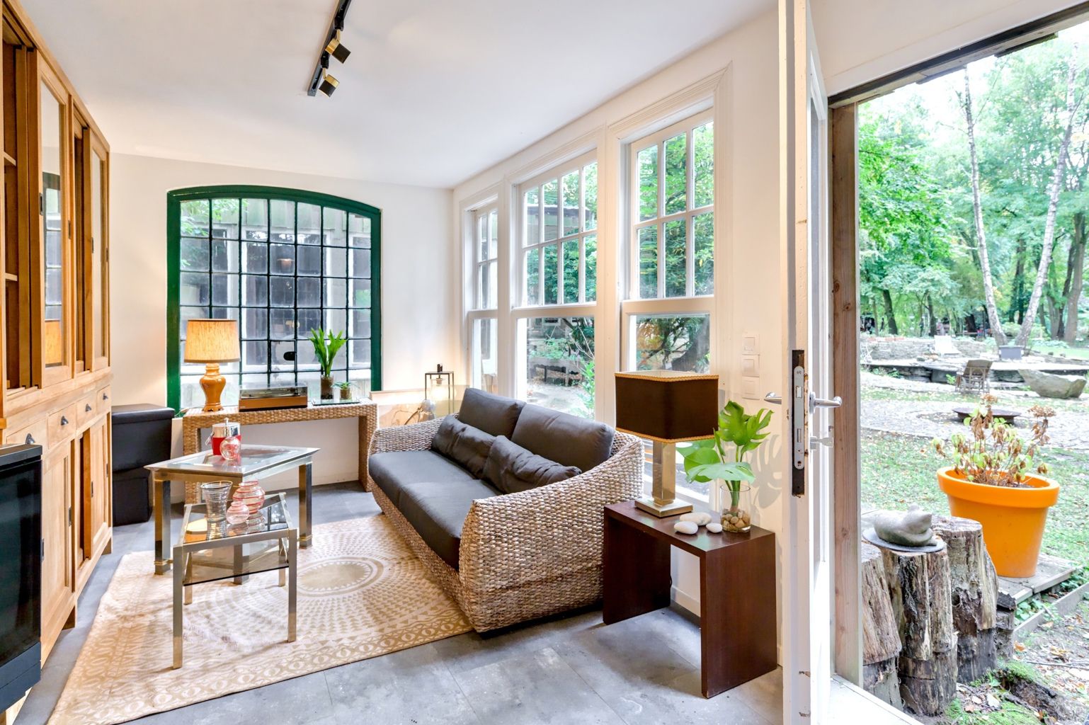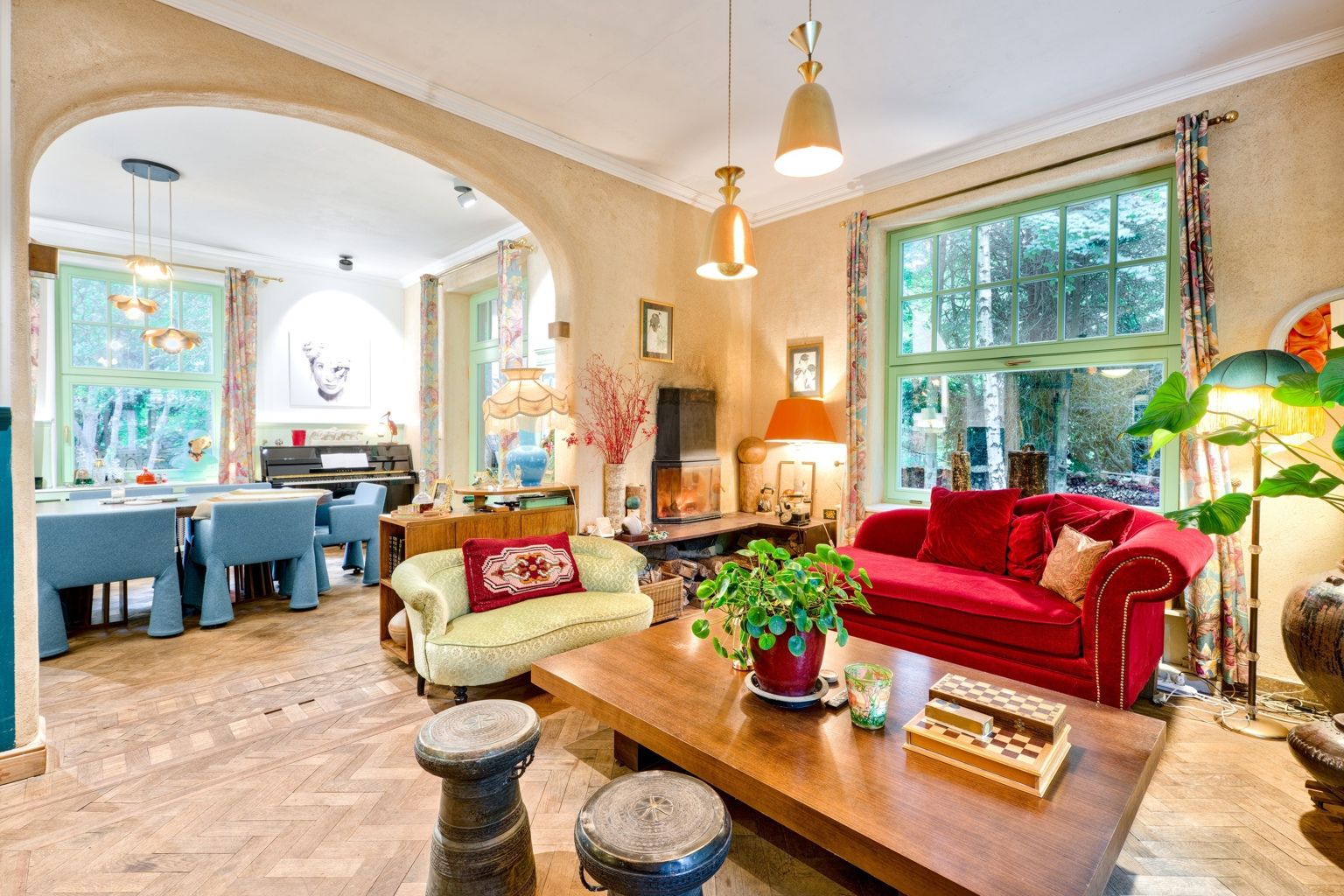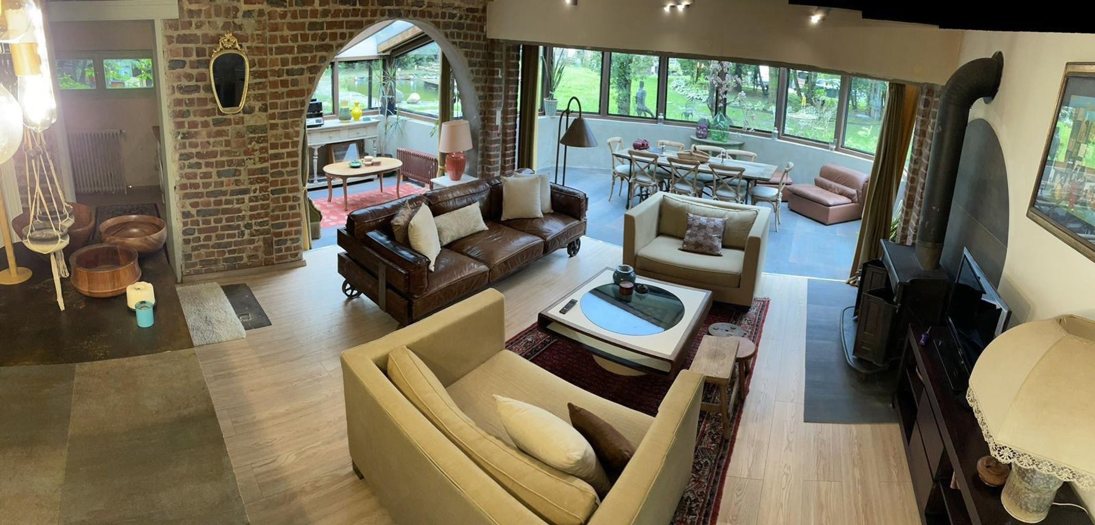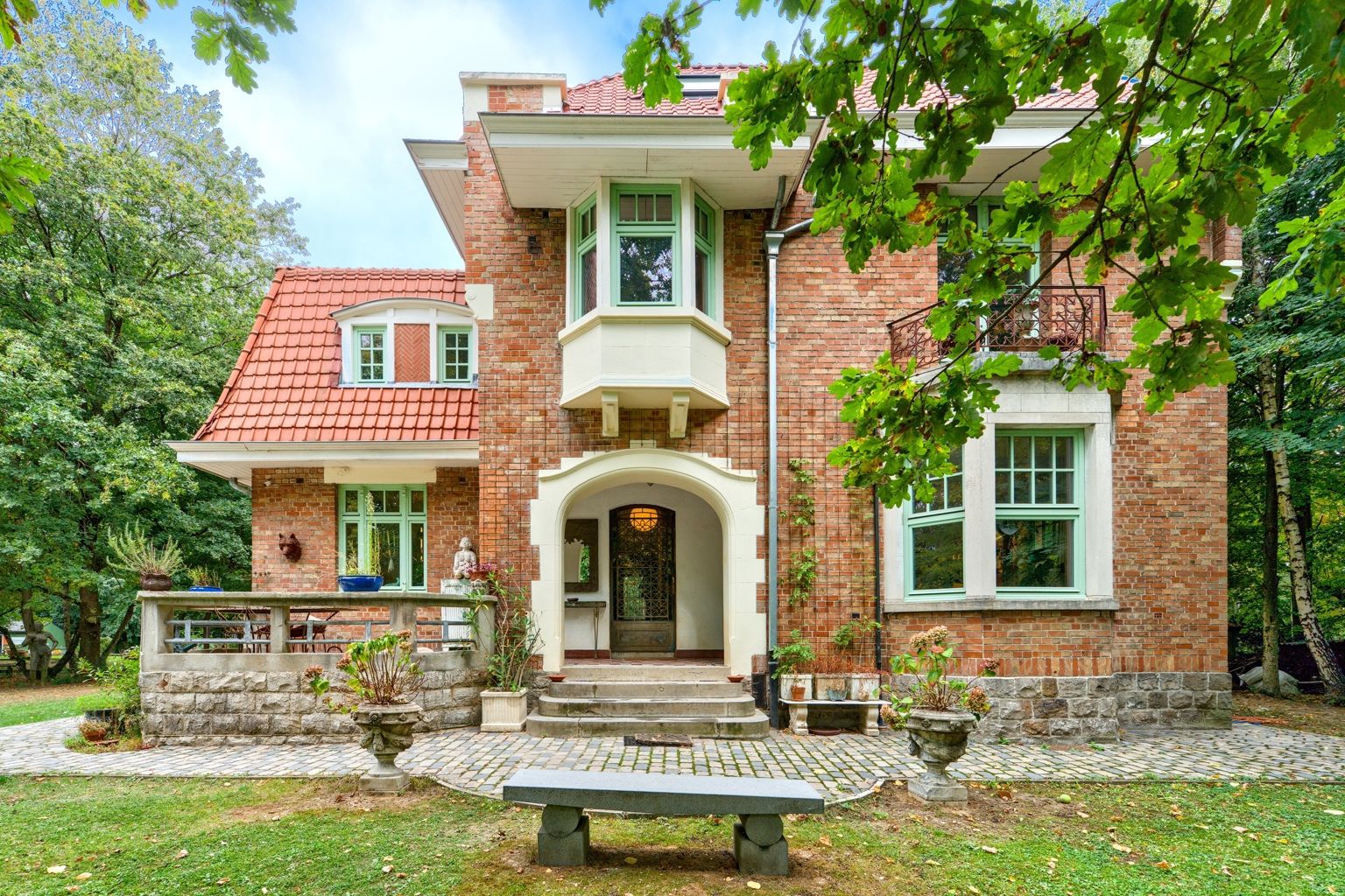Bien rare, idéal pour profession libérale!! Quartier Astrid, face à l'ancien golf de Rhode, cette élégante propriété atypique des années 30 sise sur un terrain de 34 ares agrémenté d'un étang offre diverses possibilités par sa situation, ses dépendances et l'opportunité d'acquérir un terrain supplémentaire constructible de 20 ares. La demeure principale date de 1926 et a gardé tout son charme de l'époque. Elle offre une entrée, un salon avec feu ouvert et une salle à manger, une cuisine super équipée de caractère avec son ilot en marbre de Carhart et ses vitraux de style Art Déco. Aux étages: 4 chambres, un bureau et 2 sdb, en sous-sol: un appartement avec son entrée indépendante: une chambre, 1 sdb, un wc un salon et une cuisine. La petite maison de 100m2 offre une ambiance cosy et comporte un séjour, une cuisine équipée, une chambre et une salle d'eau, idéale pour une maison d'invités ou une conciergerie. 2 autres annexes (60m2 et 70m2) sont des ateliers, studios ou bureaux, un bungalow de 20m2 et une roulotte aménagée en tiny-house est également présente sur le terrain. Un bien atypique dans un cadre bucolique qui vous séduira par son style unique et les possibilités variées qu'offrent ses divers espaces..