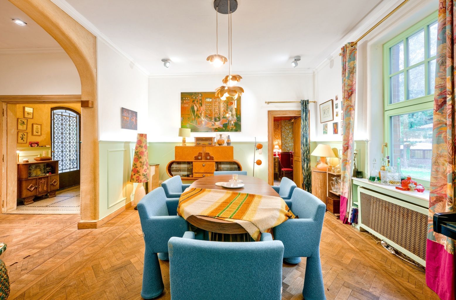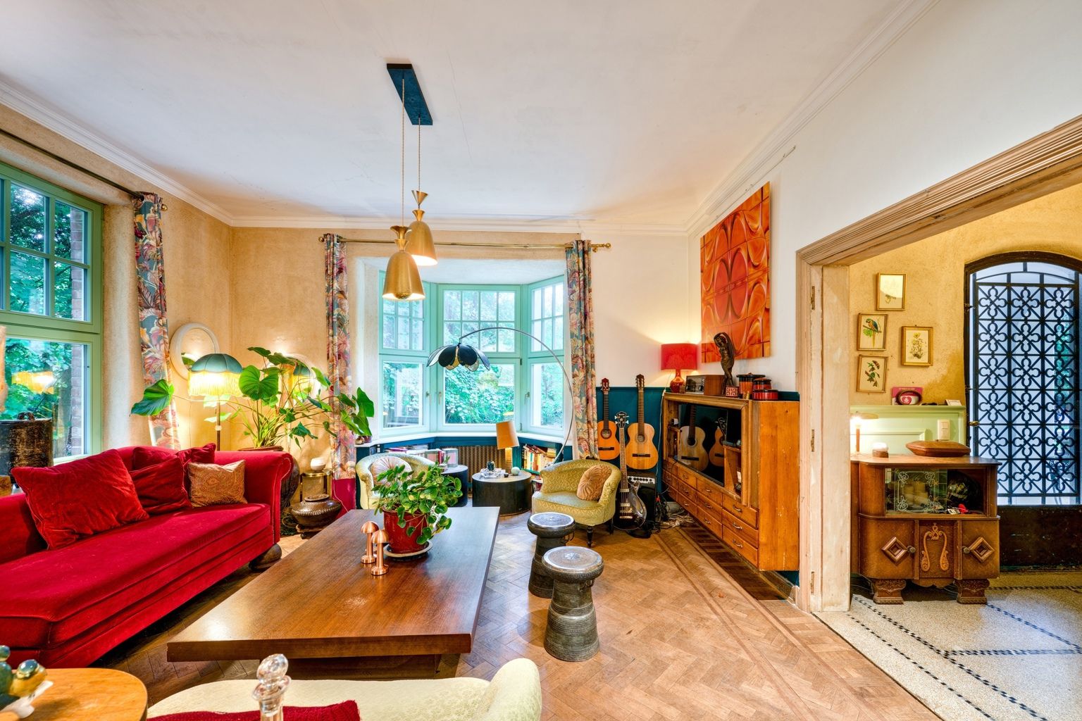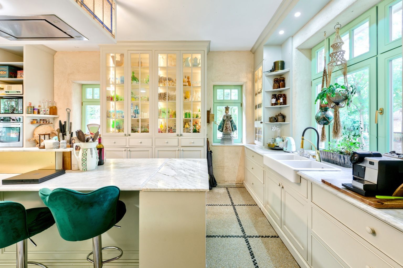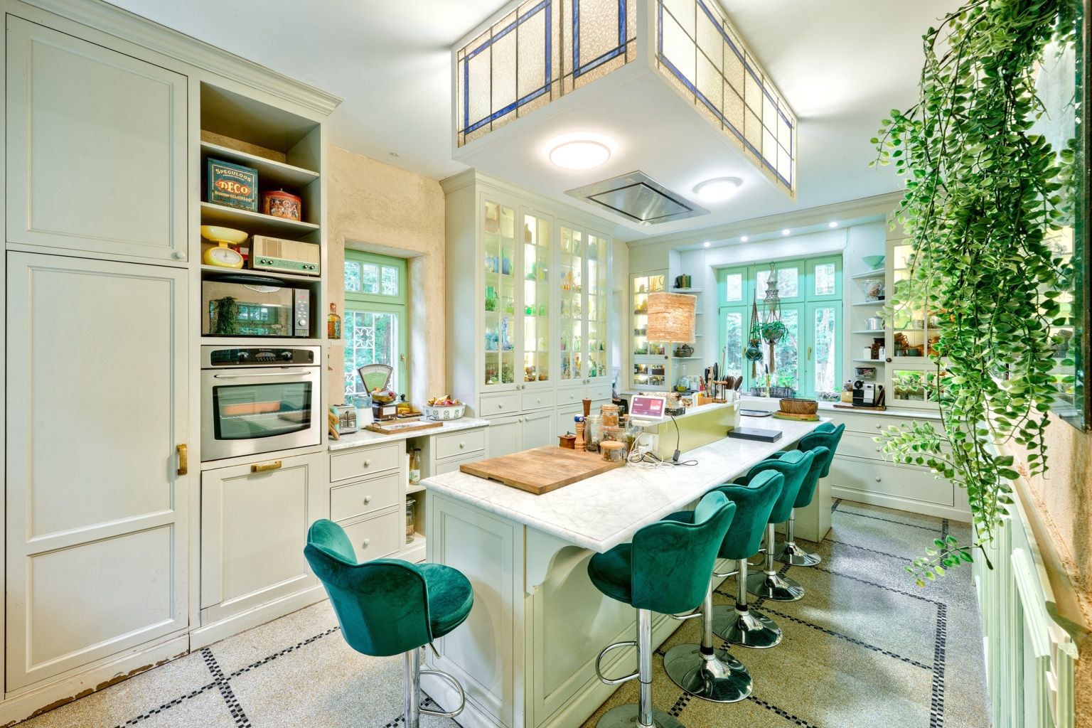Bien rare, idéal pour profession libérale!! Quartier Astrid, face à l'ancien golf de Rhode, cette élégante propriété atypique des années 30 sise sur un terrain de 34 ares agrémenté d'un étang offre diverses possibilités par sa situation, ses dépendances et l'opportunité d'acquérir un terrain supplémentaire constructible de 20 ares. La demeure principale date de 1926 et a gardé tout son charme de l'époque. Elle offre une entrée, un salon avec feu ouvert et une salle à manger, une cuisine super équipée de caractère avec son ilot en marbre de Carhart et ses vitraux de style Art Déco. Aux étages: 4 chambres, un bureau et 2 sdb, en sous-sol: un appartement avec son entrée indépendante: une chambre, 1 sdb, un wc un salon et une cuisine. La petite maison de 100m2 offre une ambiance cosy et comporte un séjour, une cuisine équipée, une chambre et une salle d'eau, idéale pour une maison d'invités ou une conciergerie. 2 autres annexes (60m2 et 70m2) sont des ateliers, studios ou bureaux, un bungalow de 20m2 et une roulotte aménagée en tiny-house est également présente sur le terrain. Un bien atypique dans un cadre bucolique qui vous séduira par son style unique et les possibilités variées qu'offrent ses divers espaces..