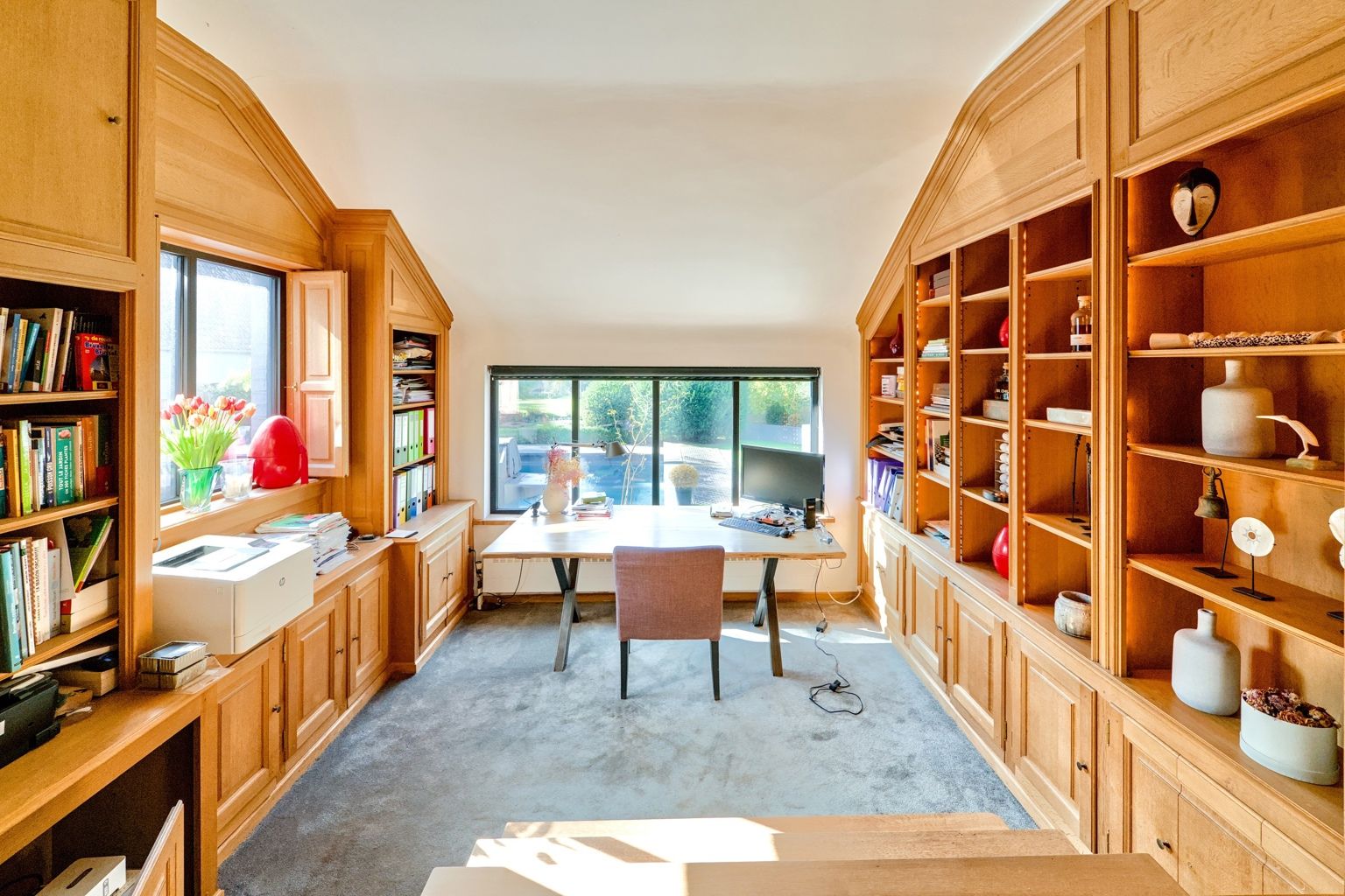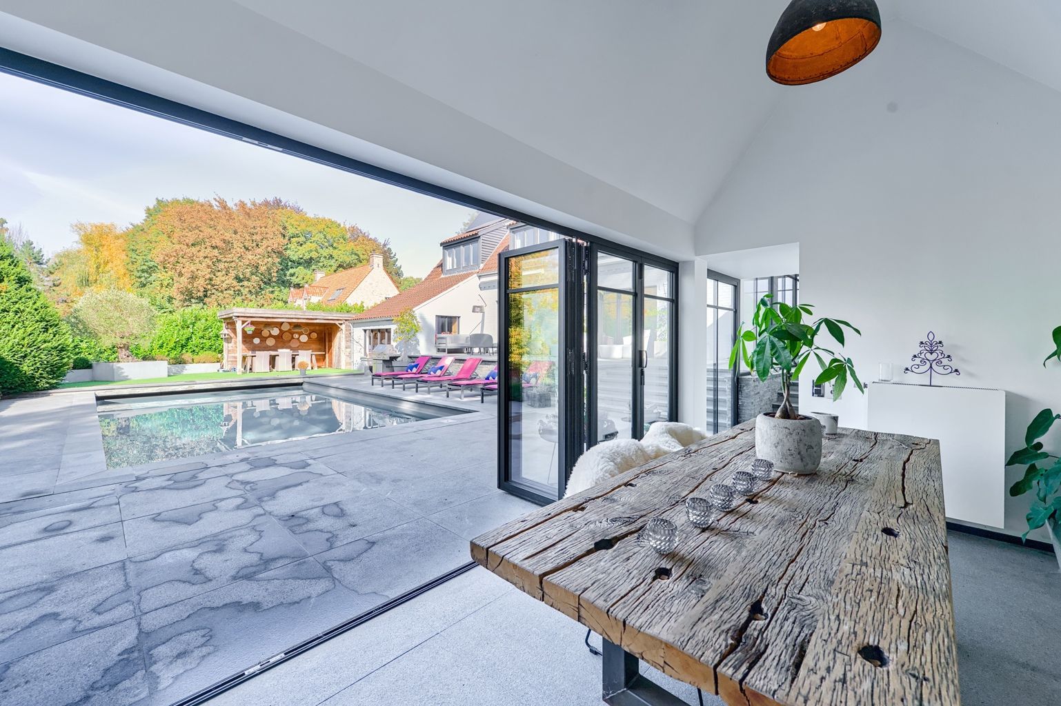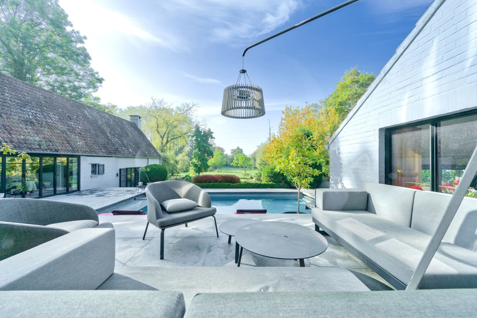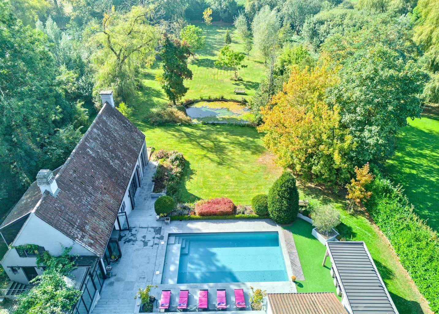 Lillois, dans le quartier recherché du Bois de Mai, non loin des axes routiers, au calme, superbe propriété sise sur un terrain de 66 ares agrémenté d'une piscine, d'un étang, d'un verger, d'un potager et d'une conciergerie. La villa offre de belle réceptions parquetées avec feu ouvert, un espace bureau - bibliothèque, une salle à manger avec ses baies vitrées donnant sur la terrasse, une cuisine super équipée, une buanderie - office, une salle à manger d'été un espace poolhouse: douche, wc, un 2ème séjour avec mezzanine et son entrée indépendante. A l'étage: la chambre des maîtres avec son dressing et sa sdb, 2 autres chambres, 1 sdd, et une double chambre avec sa sdd. Au sous-sol: un cellier et des caves. Une conciergerie séparée avec sa pièce à vivre, sa kitchenette, 1 chambre et 1 sdb. L'extérieur comporte une belle terrasse autour de la piscine, un magnifique parc avec son étang, son verger (pommiers, poiriers,...) et son potager. 24 panneaux solaires, une double borne extérieure, chaudière gaz à condensation, adoucisseur d'eau. PEB C avant installation des panneaux solaires. Vous serez séduit par les divers espaces et l'atmosphère chaleureuse qu'offre la villa et par son magnifique parc joliment arboré orienté Sud..