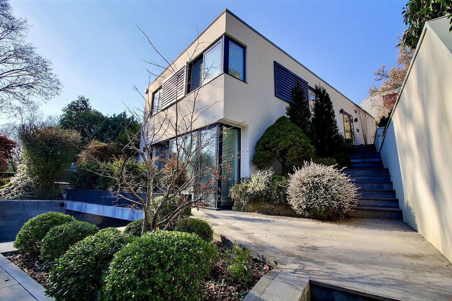 Au coeur du quartier résidentiel du Prince d'Orange, maison de l'architecte Blondel de 1957. Celle-ci a été entièrement rénovée en 2019/2020 avec des matériaux de qualité. Elle se compose de: au rez jardin: un beau living avec feu ouvert, une salle à manger et une cuisine super équipée avec ilôt, le tout ouvert et ouvrant sur un ravissant jardin privatif sud/sud ouest; 2 chambres, une salle de douche, de nombreux placards, un wc invités. A l'étage du dessous: la suite parentale avec une magnifique chambre menant à une terrasse, son dressing et sa salle de bains. Au rez rue: un garage, une buanderie et une cave à vins. La maison a conservé tout son cachet tout en étant parfaitement adaptée aux besoins actuels..