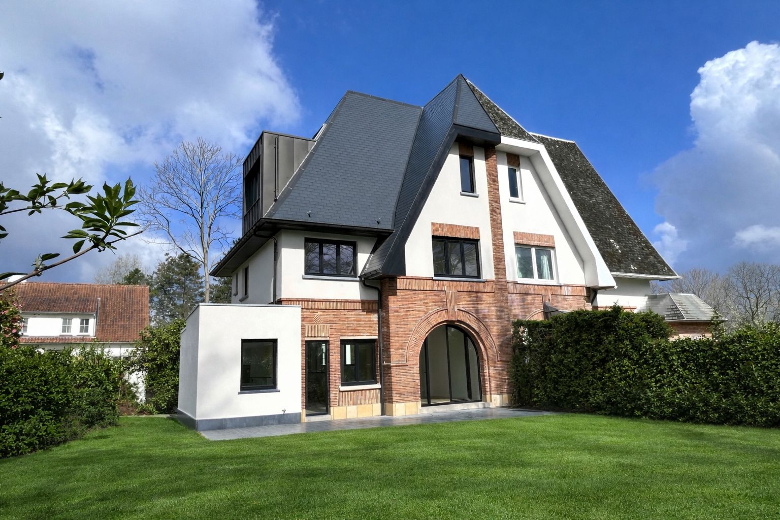 Charmante maison rénovée idéalement située à Rhode-Saint-Genèse, dans le très recherché quartier du Parvis, cette élégante maison 3 façades entièrement rénovée saura vous séduire par son style contemporain, sa luminosité et ses beaux volumes. Dès l’entrée, vous découvrez un hall accueillant menant vers un spacieux living composé d’un salon chaleureux et d’une salle à manger conviviale, ouvert sur une cuisine américaine super équipée – parfaite pour recevoir et partager de beaux moments en famille ou entre amis. À l’étage, le hall de nuit dessert trois chambres confortables (±11 m², 14 m², 15 m²), ainsi qu’une salle de douche moderne et un WC séparé. Le deuxième étage est entièrement dédié à une superbe suite parentale avec sa salle de bain privative, offrant un véritable espace de tranquillité. Le bien dispose également de caves pratiques et d’un garage. À l’extérieur, vous profiterez d’une grande terrasse donnant sur un vaste jardin orienté sud-ouest, idéal pour profiter du soleil tout au long de la journée. Le jardin reste à aménager selon vos envies, laissant libre cours à vos projets paysagers. Un bien coup de cœur, au goût du jour, bénéficiant d’une situation idéale à proximité immédiate des commerces, écoles et transports..