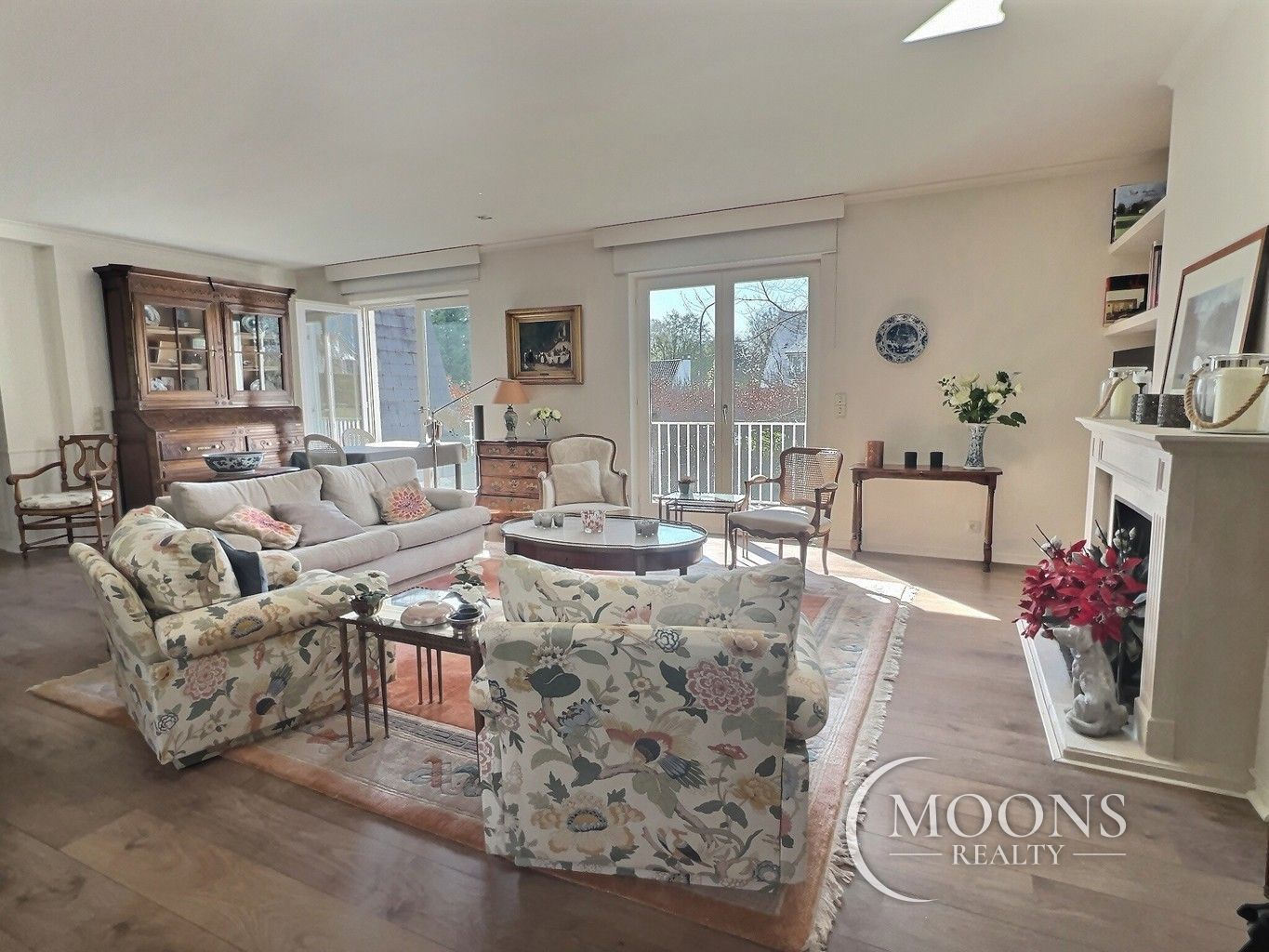 Beautiful flat ideally located in a residential area close to Espinette Centrale. The ground floor comprises an entrance hall, a storage room, a garage and a private lift. On the first floor: a beautiful hallway leading to a guest WC, a vast living room with parquet flooring and dining room, a lounge with a FO with bay windows opening onto a 30 m² terrace and a super-equipped kitchen. A large bedroom, dressing room, bathroom and study. You'll love its location on a plot of land in a residential area. This flat will make you feel right at home. A rare opportunity in Rhode-Saint-Genèse!.