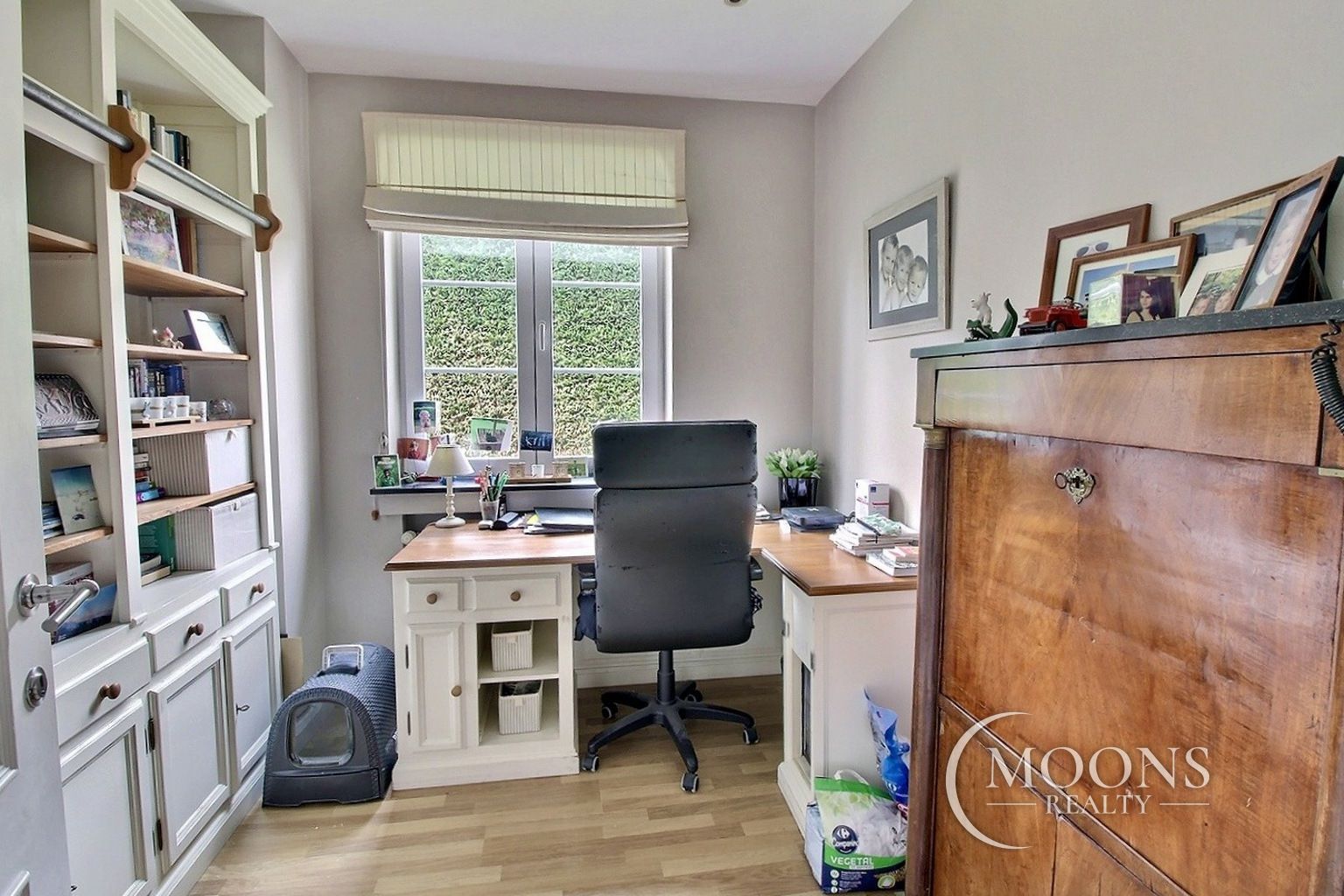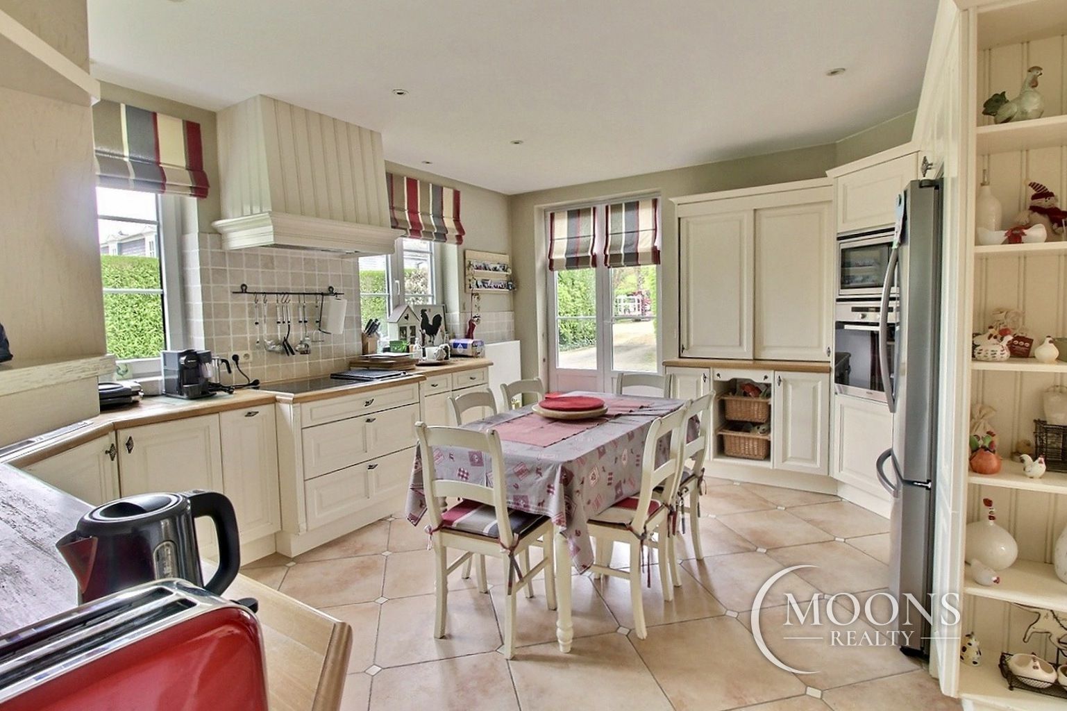 Dans le quartier recherché de l'épinette Centrale, à l'abri des regards, jolie villa classique en excellent état sise sur un terrain de 9,8 ares Sud Ouest agrémenté d'une terrasse couverte et non couverte. La villa offre: Au sous sols - rez de jardin: une grande pièce polyvalente de 40m2 avec fenêtres (salle de jeux, home cinéma,...), une cave de rangement et une chaufferie (chaudière Budérus mazout et adoucisseur d'eau) au rez-de-chaussée: une entrée, avec vestiaire et wc, un grand living avec feu ouvert,une salle à manger donnant sur la terrasse exposée Sud, une cuisine super équipée (Dovy) avec coin à déjeuner, un bureau et un garage 2 voitures. A l'étage: une superbe suite des maître avec son dressing et sa sdb privative, 4 autres chambres, 1sdb et 1 sdd. AU 2ème étage: un grand grenier aménageable. Une villa intemporelle qui vous séduira par sa situation calme et proche des commerces et transports..