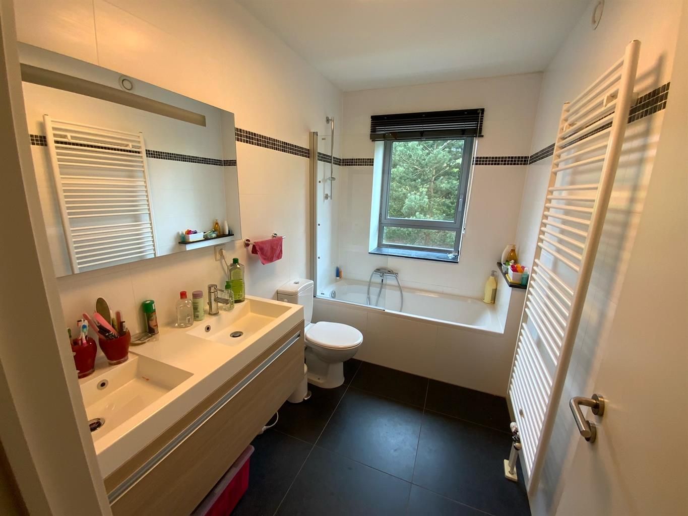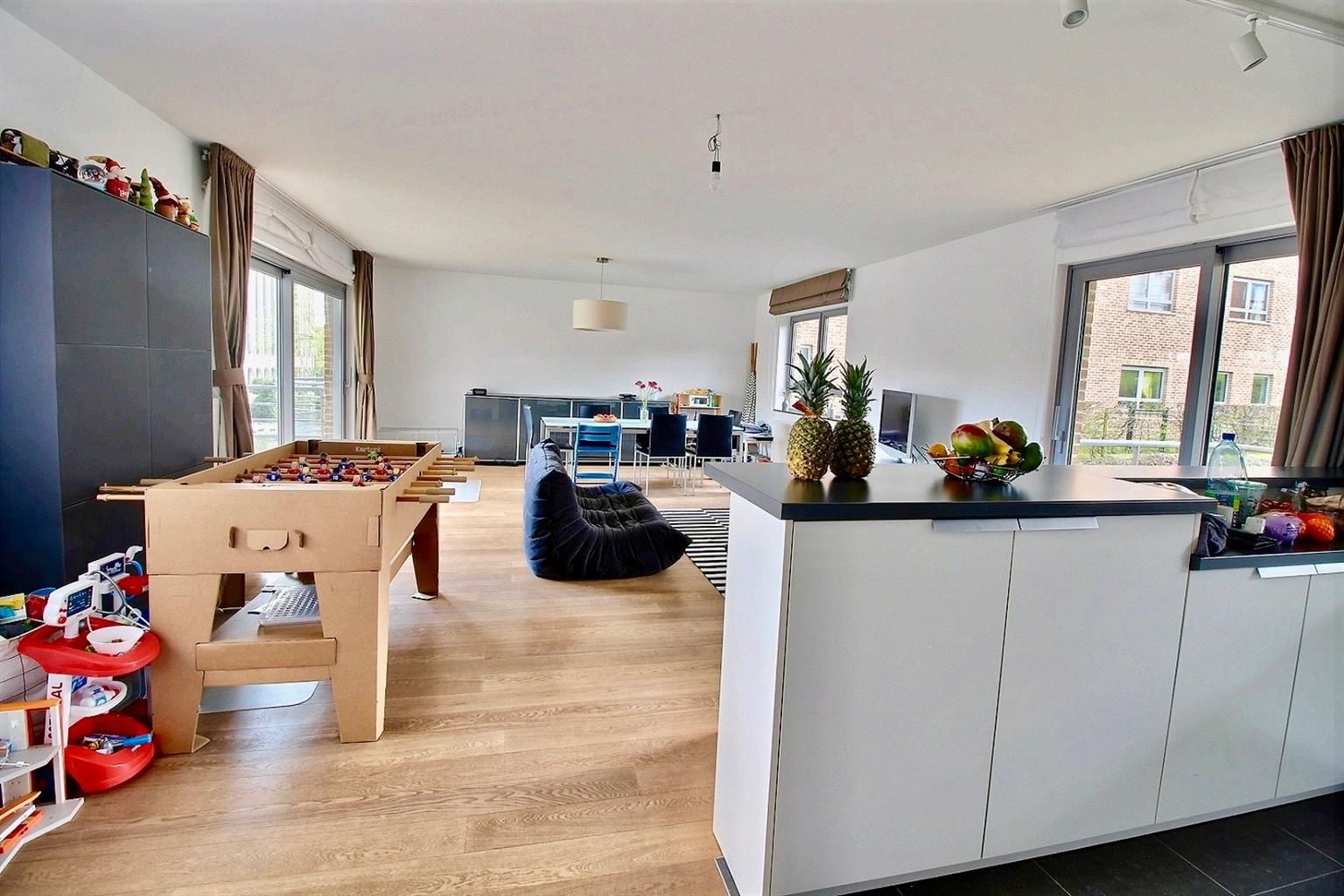VISITES: Muriel Moons 0472/76.24.92 Dans un clos privatif, à proximité immédiate de l’Ecole Européenne et de l'hôpital St Luc et à 6 stations de métro de Schuman, magnifique appartement 4 chambres. Situé dans un petit immeuble de 2011, l'appartement se compose d'un hall d’entrée avec porte blindée et vestiaire, un vaste living avec cuisine américaine super équipée et buanderie, wc invité, 4 chambres (ou 3 chambres et 1 bureau), une salle de bains et une salle de douche. L'appartement dispose également de 2 grandes terrasses orientées est et ouest et d’un petit balcon. Emplacement de parking en sous-sol compris dans le prix. Local vélos dans l'immeuble. L'appartement se situe à 50 m de l'Ecole Européenne, à distance à pieds de l’école internationale Montessori et à proximité directe de zones vertes. PEB: C- Provision charges: 250 euros/mois (charges communes). Chaudière individuelle au gaz. Possibilité de faire un package global « location + toutes charges communes comprises + entretien chaudière compris » à 2675€/mois, pas de frais additionnels communs refacturés ultérieurement.