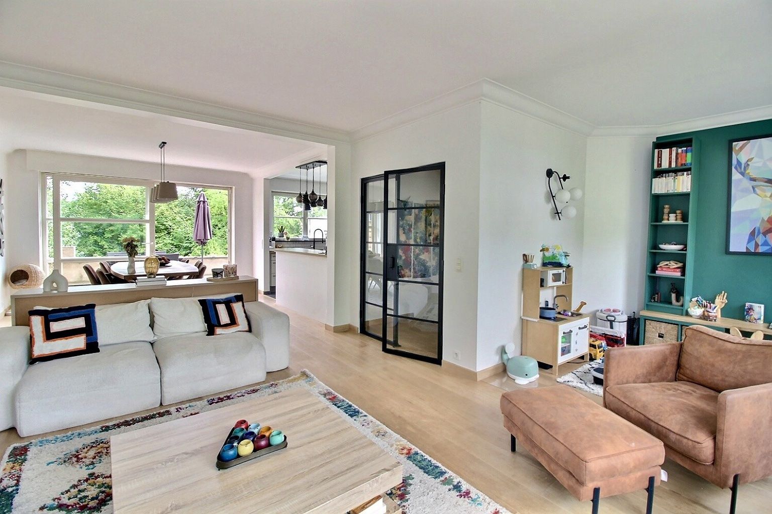Maison bel-étage idéalement située à Beersel, dans un quartier résidentiel et familial à proximité immédiate de la gare de Rhode St Genèse. Ce bien se compose comme suit : Rez-de-chaussée : hall d’entrée avec vestiaire, WC invités, garage, ainsi qu’une family room ou un bureau avec accès direct au jardin — un espace idéal pour une profession libérale. Premier étage : vaste séjour en L comprenant un salon et une salle à manger, le tout ouvert sur une cuisine américaine entièrement équipée. Cette pièce de vie lumineuse donne accès à une belle terrasse surplombant un écrin de verdure. Deuxième étage : trois chambres à coucher, une salle de bain et un WC séparé. Extérieurs : agréable jardin orienté idéalement, terrasse couverte accessible depuis la family room. Atouts supplémentaires : électricité conforme, PEB B, environnement calme et verdoyant, à proximité des transports, commerces et écoles. .