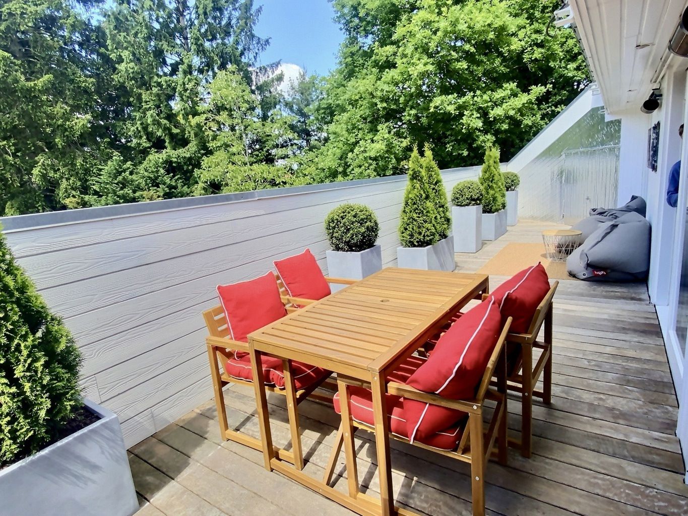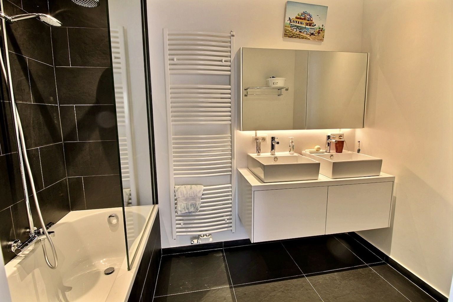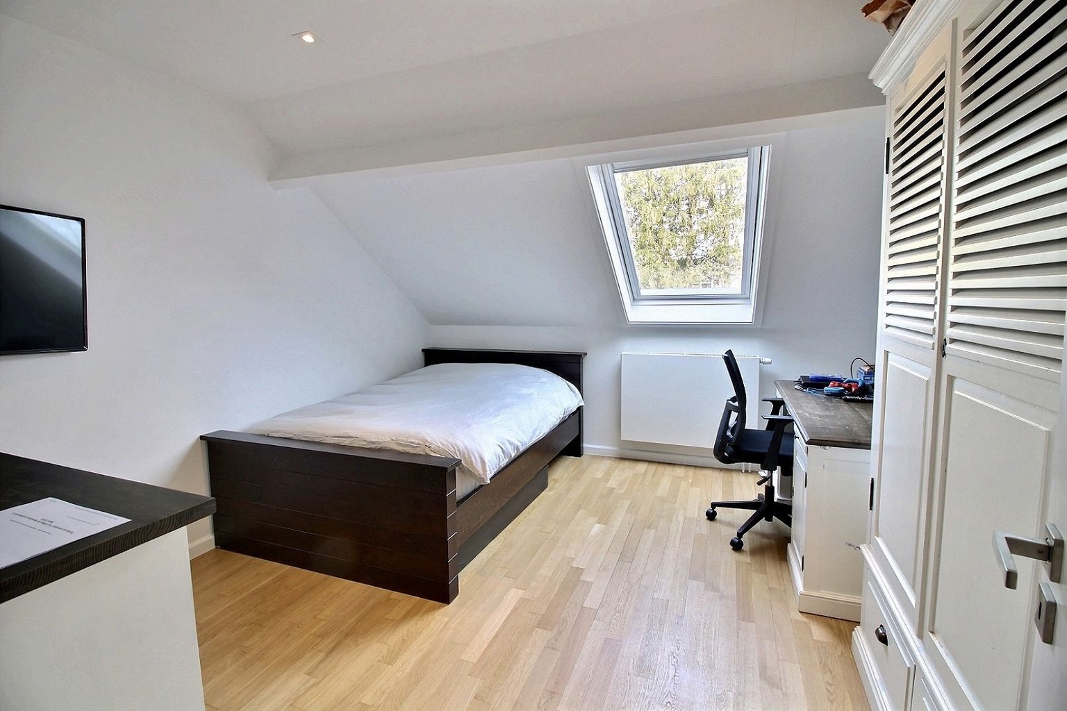 Au coeur du Fort-Jaco, dans une petite copropriété au calme, magnifique appartement penthouse au 2ème et dernier étage entièrement rénové en 2019. L'appartement se compose de vastes réceptions parquetées (+/- 70 m2) menant à une terrasse bien orientée, d'un salon TV, d'un bureau (+/- 25 m2), d'une grande cuisine avec coin à déjeuner (23 m2) et buanderie séparée, de 3 chambres (20, 18, 12 m2), de dressings, de 3 salles d'eau et de 2 greniers. L'appartement dispose également d'un joli jardin privatif de 125 m2 et des terrasses (30 et 10 m2). Chaudière au gaz à condensation, double vitrage, alarme, ascenseur avec accès direct dans l'appartement. L'appartement a été rénové avec goût et détails (air conditionné dans les chambres orientées sud, stores, chauffages d'appoint sur terrasse, nouvelle cabane de jardin, nouvelle toiture isolée 2022) Petite copropriété 1 garage + 1 emplacement de parking (40.000 euros) + 2 caves + parking extérieur pour visiteurs. PEB: D+ Electricité conforme .