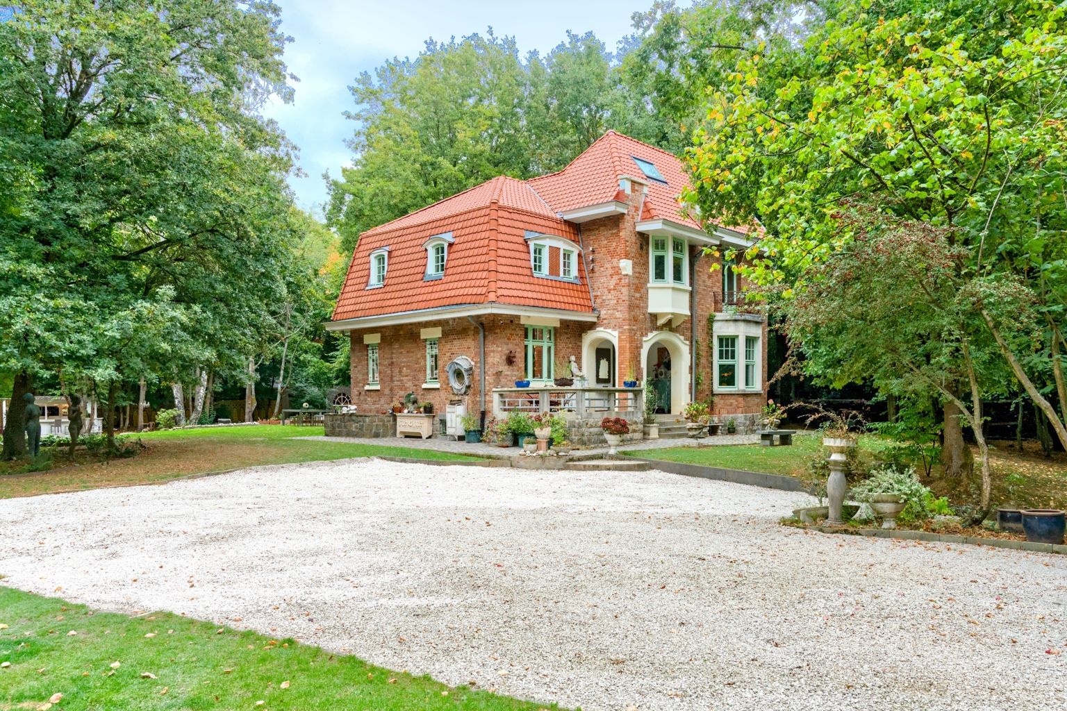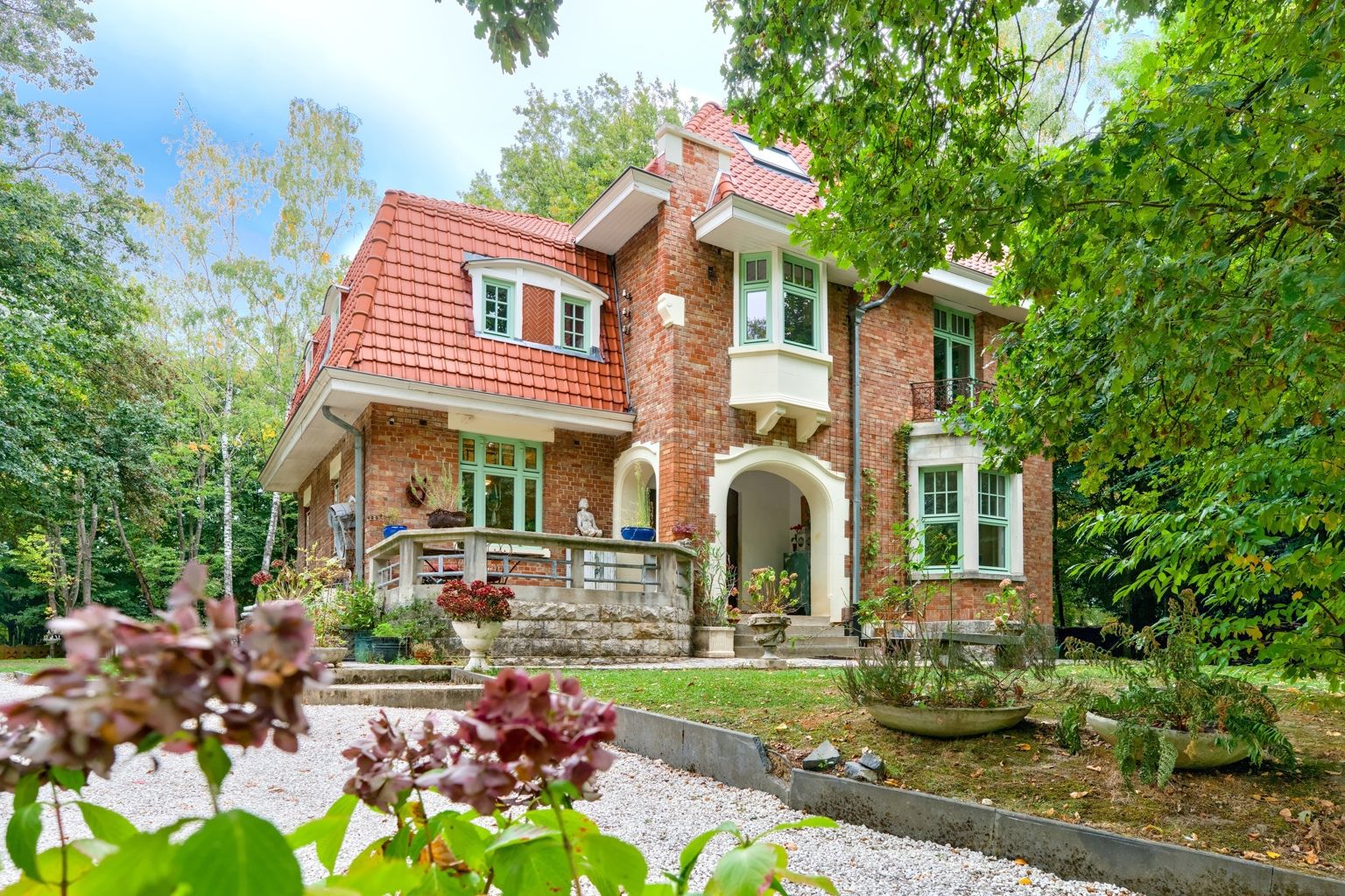 Bien rare, idéal pour profession libérale!! Quartier Astrid, face à l'ancien golf de Rhode, cette élégante propriété atypique des années 30 sise sur un terrain de 34 ares agrémenté d'un étang offre diverses possibilités par sa situation, ses dépendances et l'opportunité d'acquérir un terrain supplémentaire constructible de 20 ares. La demeure principale date de 1926 et a gardé tout son charme de l'époque. Elle offre une entrée, un salon avec feu ouvert et une salle à manger, une cuisine super équipée de caractère avec son ilot en marbre de Carhart et ses vitraux de style Art Déco. Aux étages: 4 chambres, un bureau et 2 sdb, en sous-sol: un appartement avec son entrée indépendante: une chambre, 1 sdb, un wc un salon et une cuisine. La petite maison de 100m2 offre une ambiance cosy et comporte un séjour, une cuisine équipée, une chambre et une salle d'eau, idéale pour une maison d'invités ou une conciergerie. 2 autres annexes (60m2 et 70m2) sont des ateliers, studios ou bureaux, un bungalow de 20m2 et une roulotte aménagée en tiny-house est également présente sur le terrain. Un bien atypique dans un cadre bucolique qui vous séduira par son style unique et les possibilités variées qu'offrent ses divers espaces..