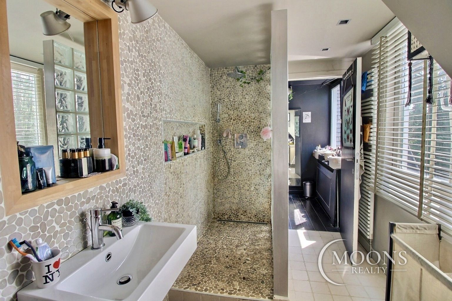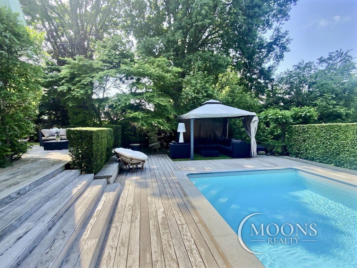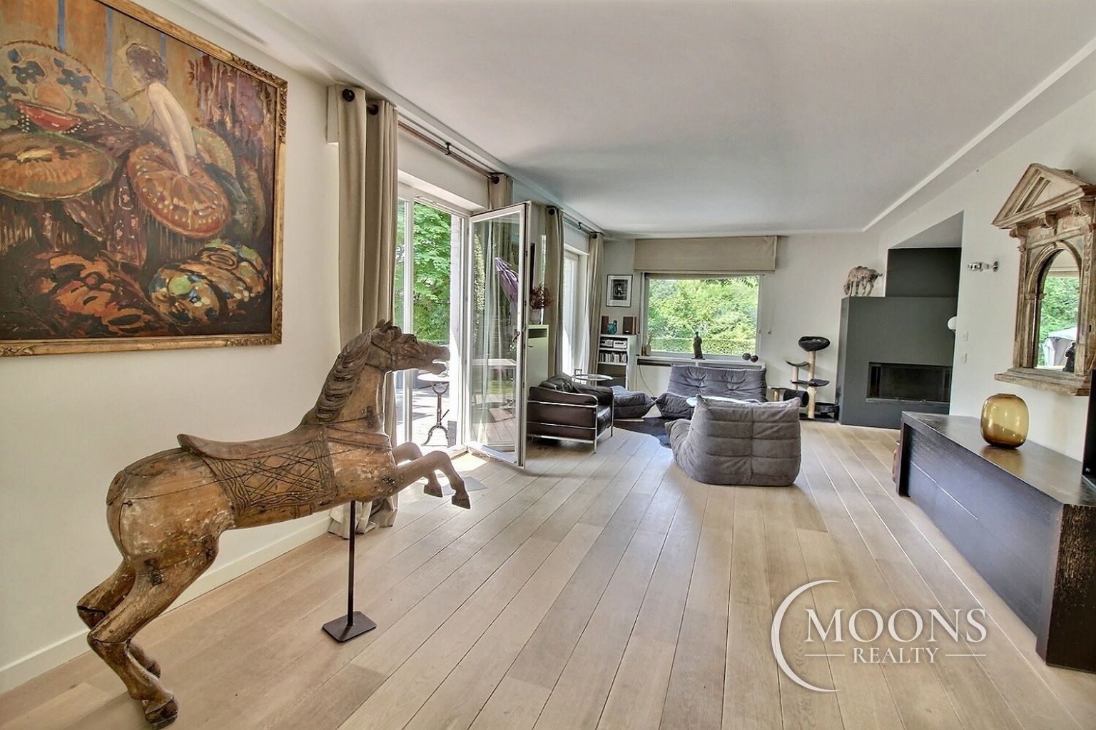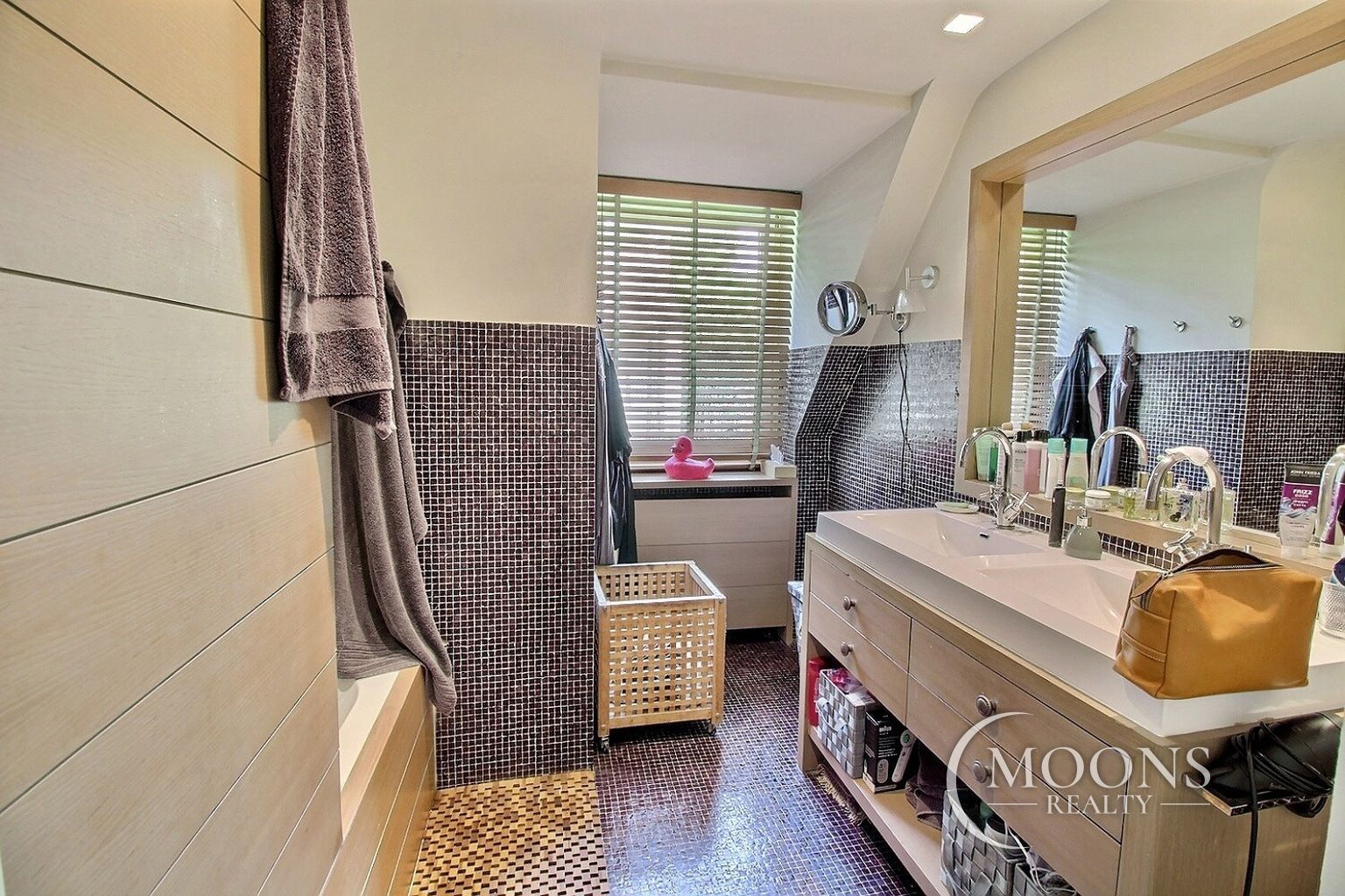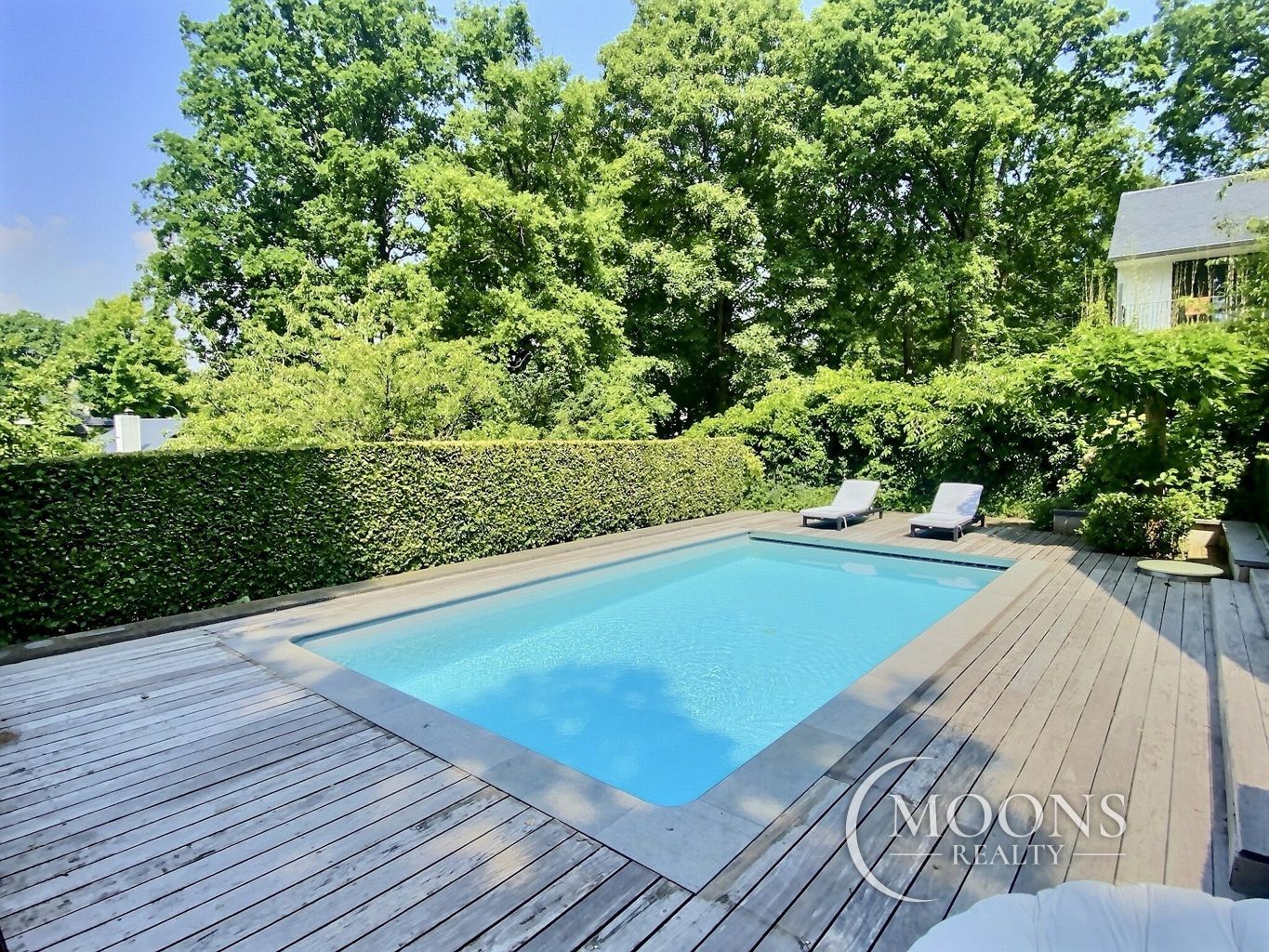 Prachtige villa in klassieke stijl op een perceel van 12 are, ideaal gelegen in de woonwijk Espinette Centrale, vlakbij het treinstation Rhode-Saint-Genèse en kleine winkels. Het bestaat uit een hal, een Amerikaanse keuken met kookeiland, een L-vormige woonkamer met eetkamer en een televisiehoek met open haard. Op de eerste verdieping leidt de nachthal naar een doucheruimte, een toilet en 3 slaapkamers, waaronder de hoofdslaapkamer met kleedkamer en en-suite badkamer. Op de tweede verdieping is de zolder omgebouwd tot een familiekamer met kantoorruimte. Garage voor 3 auto's en talrijke kelders. Het geheel wordt gecompleteerd door een prachtige tuin met terras en zwembad op het zuiden..